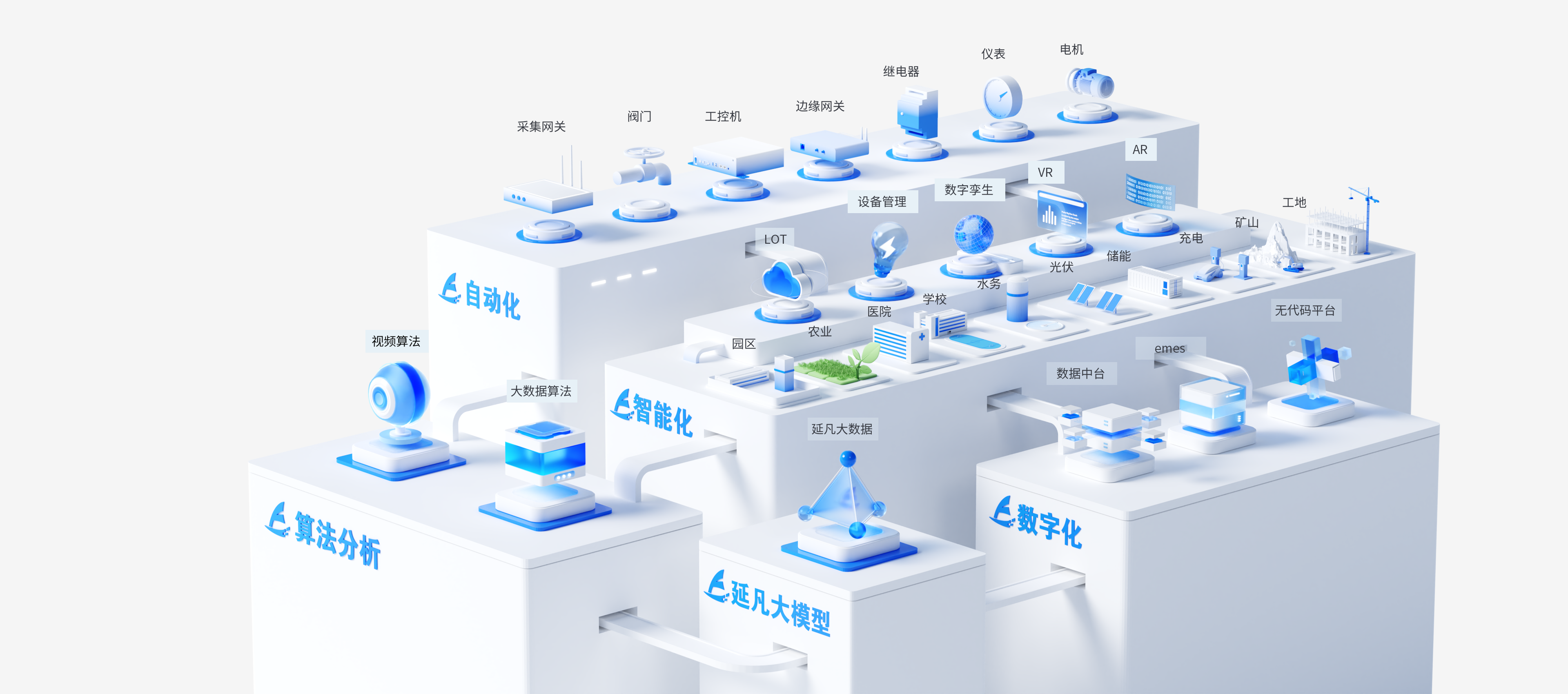 我们提供从硬件驱动到数据采集的全链路解决方案,依托拓展性IOT平台、数据中台与低代码技术快速构建业务系统,结合虚幻引擎实现数字孪生展示,并运用AI算法挖掘数据价值,助力企业高效决策